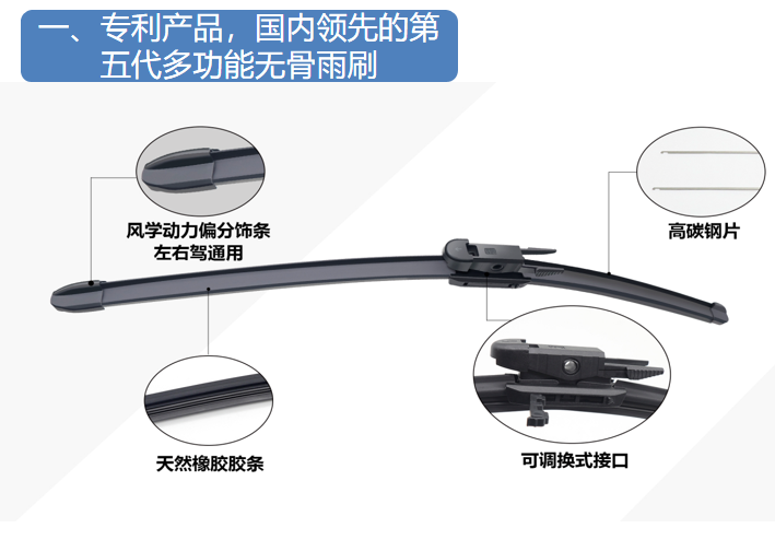 3、 轻量化的产品结构,减小刮刷阻力、减小噪音和抖动。